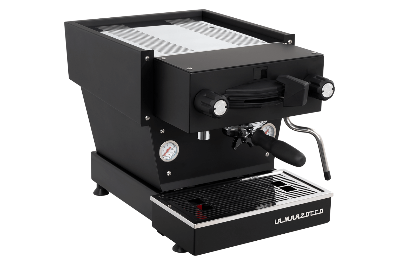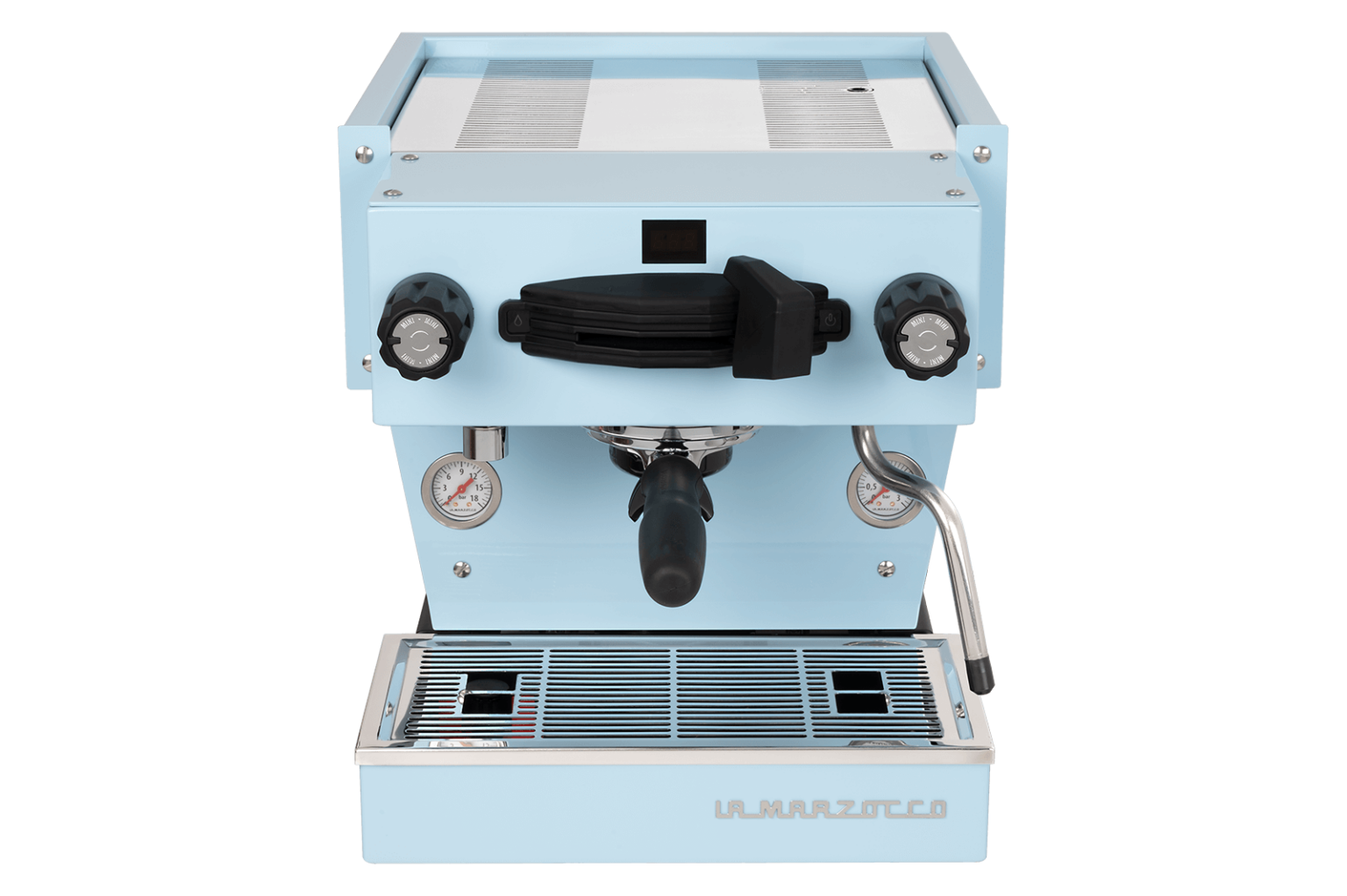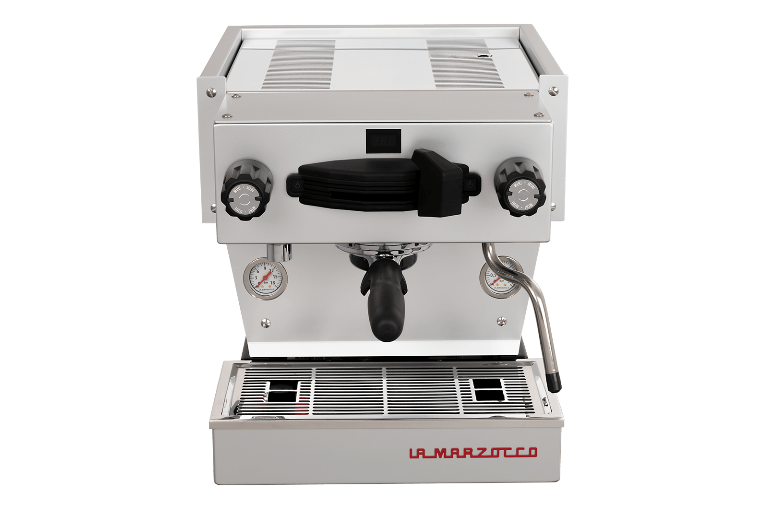 A MINI félautomata, mely a La Marzocco klasszikus megjelenésű kezelőfelületével vezérelhető.